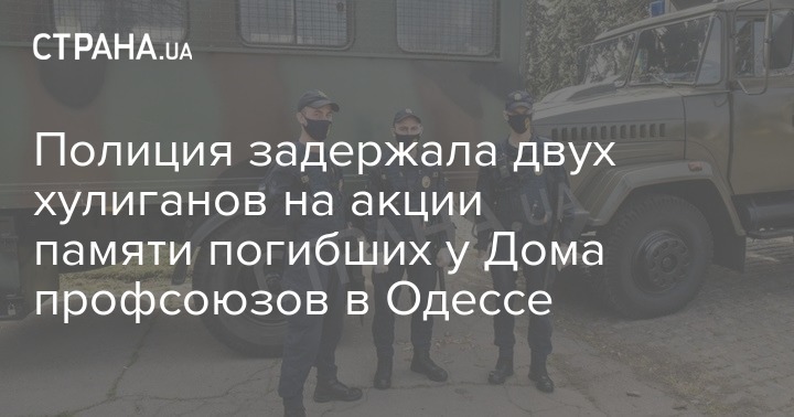 Полиция задержала двоих хулиганов на акции памяти жертв, погибших в Доме профсоюзов в Одессе. Фото: Страна