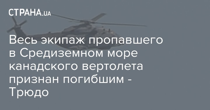 Все шестеро пропавших членов экипажа вертолета военно-морского флота Канады, потерпевшего крушение во время операции НАТО на этой неделе в Средиземном море, объявлены погибшими.