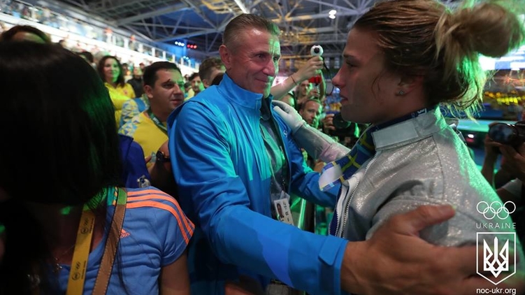 Одним из первых, кто поздравил ее с победой, тут же, прямо в зале был президент НОК Украины Сергей Бубка.