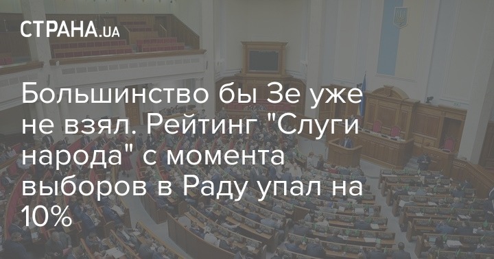 Отметим, что на выборах в Верховную Раду "Слуга народа" взяла более 43%. То есть, падение сейчас составило более 10%. С момента выборов вырос рейтинг "Оппоплатформы" более чем на 2%, рейтинг "Евросолидарности" вырос на 7%, рейтинг "Батькивщины" на 4%. Только эти 4 партии проходят 5% барьер на выборы в Раду. Отметим, что при таком раскладе "Слуга народа" не берет на выборах достаточно голосов, чтоб сформировать монобольшинство.