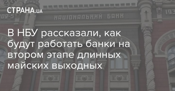 В НБУ рассказали, как будут работать банки на втором этапе длинных майских выходных