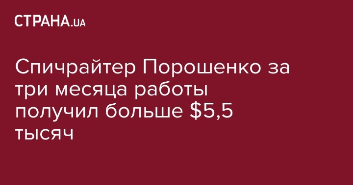 Спичрайтер Порошенко за три месяца работы получил больше $5,5 тысяч
