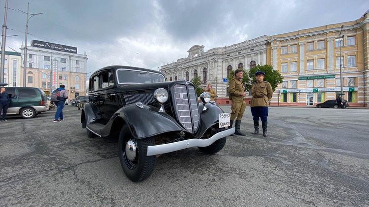 Бойцы Красной армии на машинах военных лет. В центре Харькова провели автопробег в честь 75-летия Победы