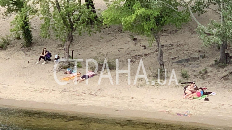 В Киеве на Трухановом острове люди загорают на пляже без масок, но с дистанцией. Фото: Страна.ua