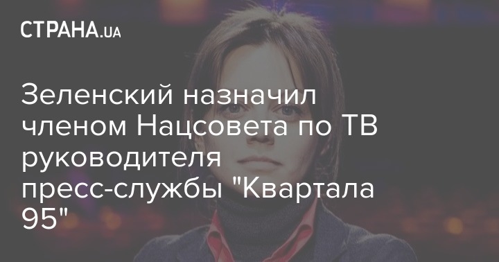 Президент Украины Владимир Зеленский назначил членом Национального совета по вопросам телевидения и радиовещания руководителя пресс-службы студии "Квартал 95" Татьяну Руденко.