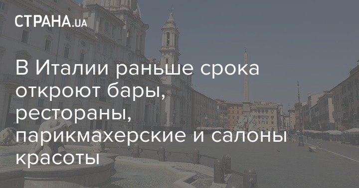 Италия планирует досрочно отменить некоторые карантинные ограничения. Так, из-за давления со стороны региональных лидеров, откроются бары, рестораны, парикмахерские и салоны красоты.
