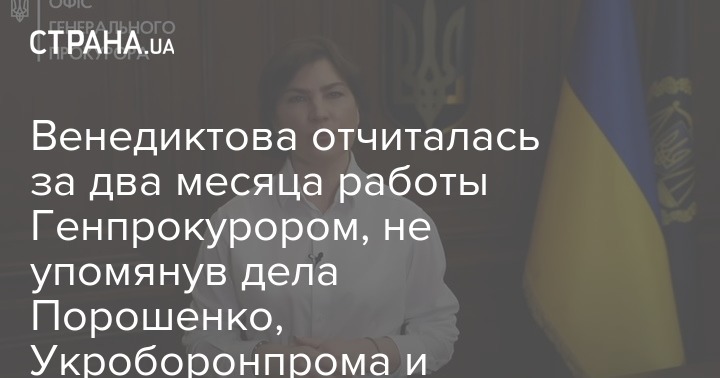 Генеральный прокурор Украины Ирина Венедиктова рассказала о том, что было сделано за два месяца ее работы в Офисе генпрокурора.