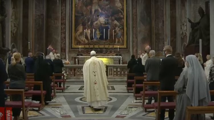 Папа Римский провел первую с марта мессу в Соборе Святого Петра. Видео