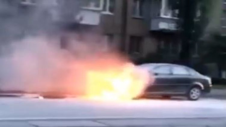 Видео пылающей иномарки выложил портал "Киев оперативный" в соцсети Facebook.