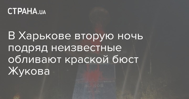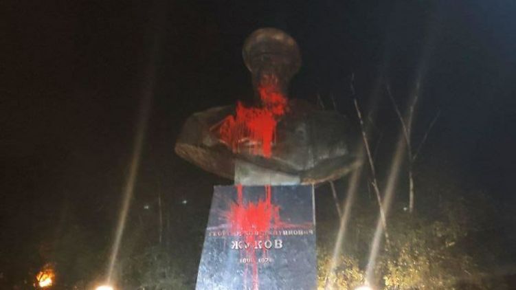 В Харькове вторую ночь подряд обливают красной краской памятник маршалу СССР Георгию Жукову.