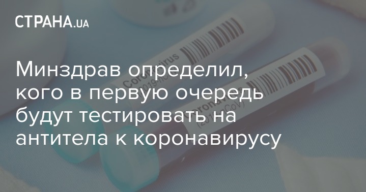 Министерство здравоохранения Украины после одобрения президентом Владимиром Зеленским массового исследования населения на Covid-19 утвердило категории лиц, которых необходимо тестировать на антитела к коронавирусу.