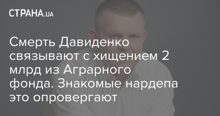 Смерть Давиденко связывают с хищением 2 млрд из Аграрного фонда. Знакомые нардепа это опровергают