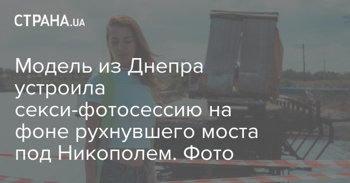 Модель Ася Микович устроила пикантную фотосессию на фоне обвалившегося моста под Никополем, который обвалился в момент, когда по нему ехал грузовик.
