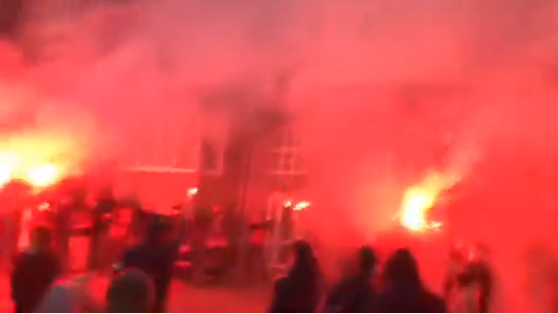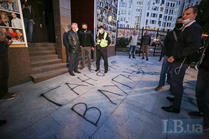 Они бросали в здание редакции яйца, исписали надписями тротуар, зажгли файеры.