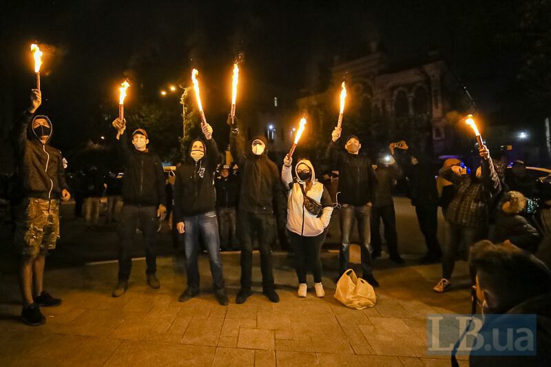 Несмотря на режим карантина, 27 апреля праворадикалы во главе с Сергеем Стерненко, и даже один из нардепов от "Слуги народа", вышли сначала под Офис президента, где зажгли файеры. Они были недовольны тем, что СБУ заявило о завершении расследования по делу Екатерин Гандзюк.