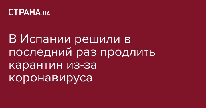 Режим повышенной готовности из-за пандемии коронавируса был введен в Испании 14 марта и с тех пор продлевался уже пять раз.