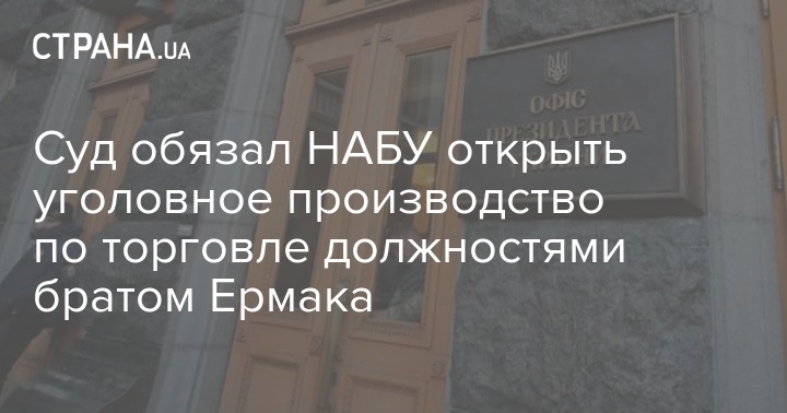 Суд обязал НАБУ открыть уголовное производство по торговле должностями братом Ермака