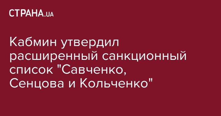 Кабинет министров своим распоряжением сообщил о введении новых санкций против лиц, причастных к противоправным действиям против граждан Украины, речь идет о Савченко, Сенцове и Кольченко.