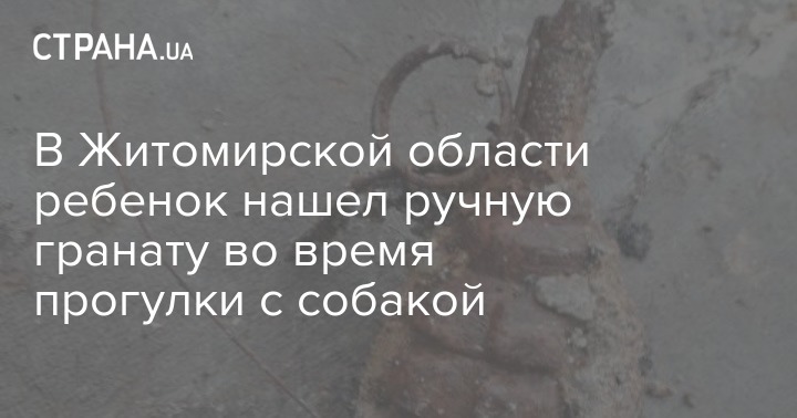 В городе Новоград-Волынский Житомирской области в среду, 3 июня, 10-летний мальчик, гуляя с собакой, нашел ручную гранату