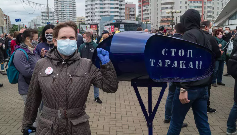 В конце мая Тихановского арестовали на пикете по сбору подписей за жену, обвинив в насилии против милиции, за что ему может грозить до шести лет. Супруга арестованного блогера проводит кампанию под лозунгом "Стоп таракан".