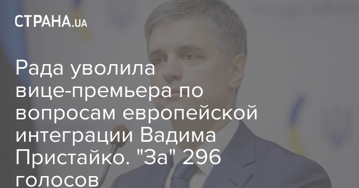 Верховная Рада Украины на заседании в четверг, 4 июня, уволила вице-премьера по вопросам европейской и евроатлантической интеграции Вадима Пристайко.