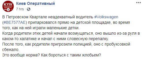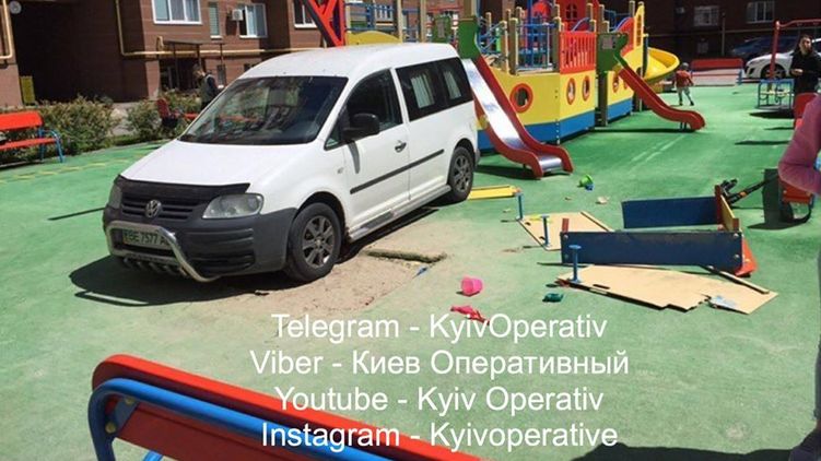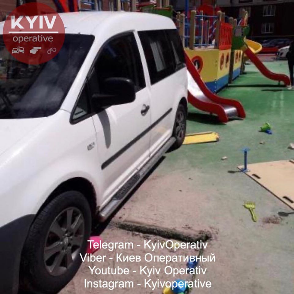 В Киеве водитель запарковался прямо на детской площадке, фото: facebook.com/KyivOperativ