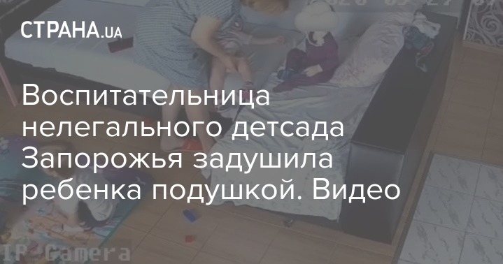 В сети появились кадры с камеры наблюдения, установленной в нелегальном детском саду Запорожья, где на днях погибла годовалая девочка. На видео, которое запечатлело последние минуты жизни ребенка видно, видно что женщина укладывает плачущую малышку с соской во рту на диван, а затем прикладывает к ее лицу подушку, приматывает ее и туго завязывает, а позже переносит девочку в другую комнату.