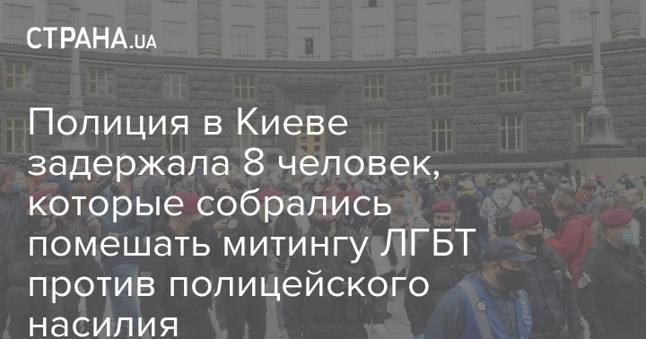 В Киеве на улице Грушевского, где сегодня на акцию протеста вышли ЛГБТ, полиция задержала восемь молодых людей, которые пытались помешать проведению массового митинга. На данный момент устанавливаются все обстоятельства произошедшего.