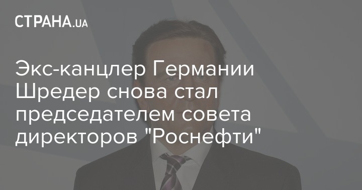 Бывший канцлер Германии Герхард Шредер, с которым хочет заключить пари об антироссийских санкциях посол Украины в ФРГ Андрей Мельник, снова стал председателем совета директоров "Роснефти".