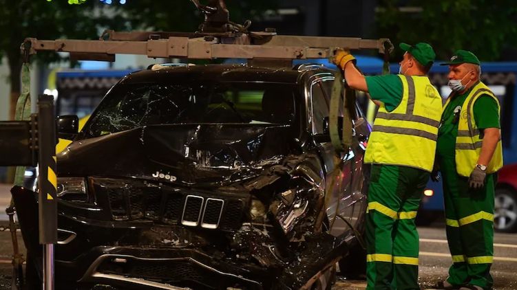 Автомобиль Михаила Ефремова превратился в груду металла. Фото: Игорь Иванко / Коммерсант