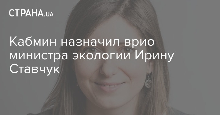 По его словам, Кабмин назначил Ирину Ивановну Ставчук первым заместителем министра охраны окружающей среды и природных ресурсов. Также на нее были временно возложены обязанности министра охраны окружающей среды и природных ресурсов.