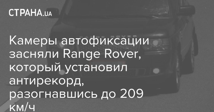 Антирекорд установил Range Rover с номером AH097*. Он ехал по автодороге М03 Киев-Харьков-Должанский со скоростью 209 км/ч, при этом максимально позволенная скорость на участке дороги была 110 км/ч.