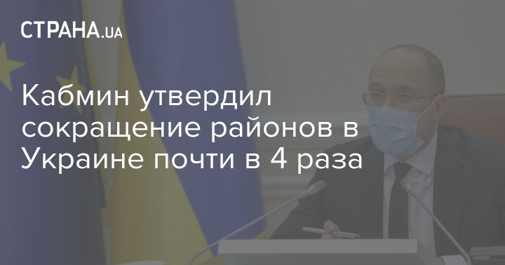 Кабмин утвердил проект нового деления областей Украины на районы, втрое сократив их количество с - 490 до 129. По словам премьера Дениса Шмыгаля, это необходимо, чтобы "власть работала более эффективно и не дублировала никаких функций".
