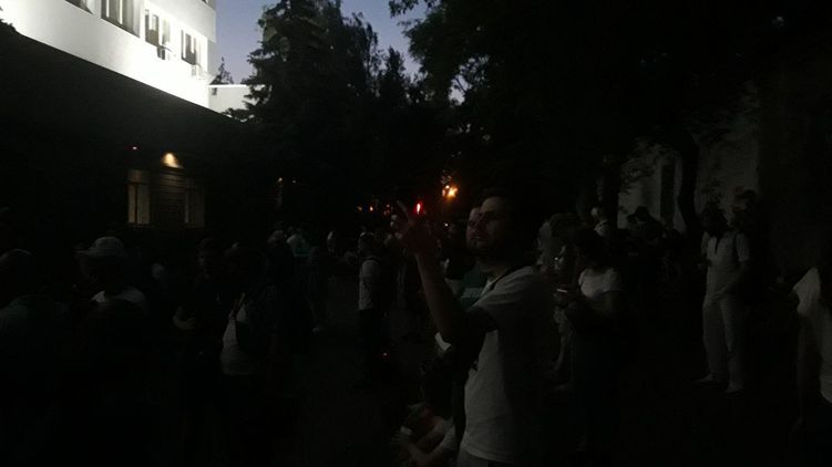 Хотя заседание закончилось и на улице уже очень темно, люди из поддержки радикала не спешат расходиться.
