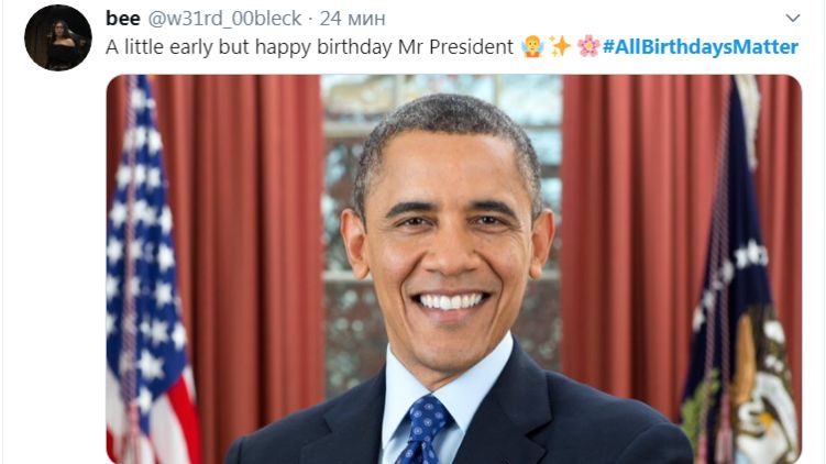 В день рождения Трампа поздравления достаются Обаме. Скриншот из Twitter