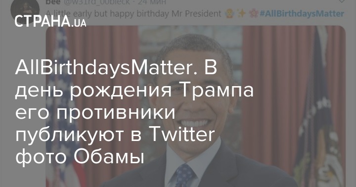 Противники действующего главы Белого дома Дональда Трампа придумали акцию в Twitter. В день его рождения они поздравляют не его, а предыдущего президента Барака Обаму.