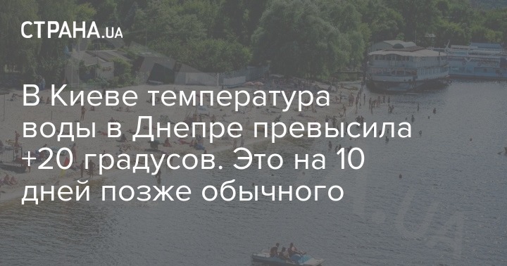 Температура воды в реке Днепр в районе Киева превысила +20 градусов. Метеорологи говорят, что средняя многолетняя дата перехода температуры воды через +20 - это 5 июня, сообщается на сайте Центральной геофизической обсерватории имени Бориса Срезневского.