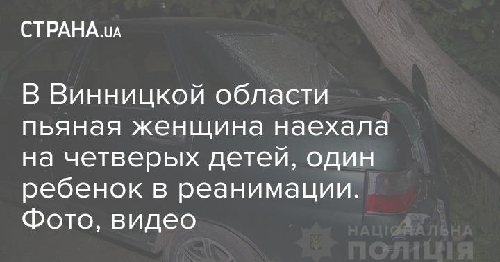 В Винницкой области в селе Слободка 32-летняя местная жительница, находясь за рулем автомобиля в пьяном состоянии наехала на четырех детей. Один из травмированных мальчиков находится в реанимации. Женщине грозит до 8 лет лишения свободы.