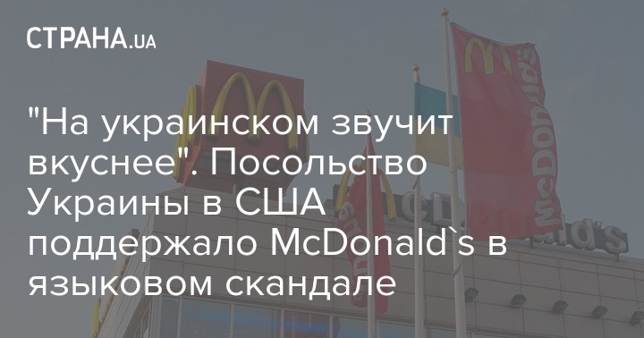 Оказавшуюся в центре языкового канала компанию McDonald's, которая отказалась предоставлять свои услуги клиентам на русском языке, неожиданно поддержало посольство Украины в Соединенных Штатах Америки. Дипломаты заявили в соцсети, что названия блюд на украинском языке звучат вкуснее и призвали изучать украинский вместе с McDonald's.