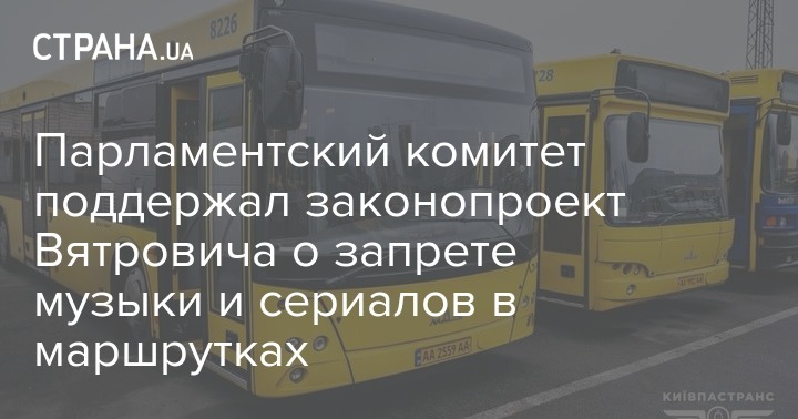 "Это проект, инициированный общественностью, который мы - 15 депутатов разных фракций - внесли, чтобы защитить пассажиров от навязчивой музыки. Если закон проголосуют на пленарном заседании, украинцы смогут, как во всем цивилизованном мире, ехать в тишине или слушать музыку или звук фильмов через наушники", - написал Вятрович.
