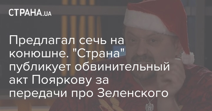В распоряжении "Страны" оказался обвинительный акт, составленный СБУ в отношении телеведущего Сергея Пояркова, который оскорблял президента Зеленского и его семью. Документ вручили обвиняемому 29 мая.