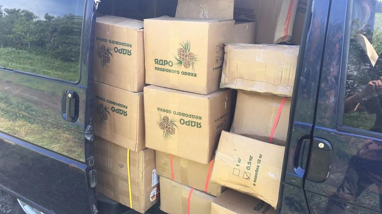 Контрабандисты пытались провезти через границу с Россией более тонны кедровых орехов и сушеного манго. Оторвавшись от пограничников, одна машина застряла в кювете, после чего нарушители решили бросить товар и сбежать.