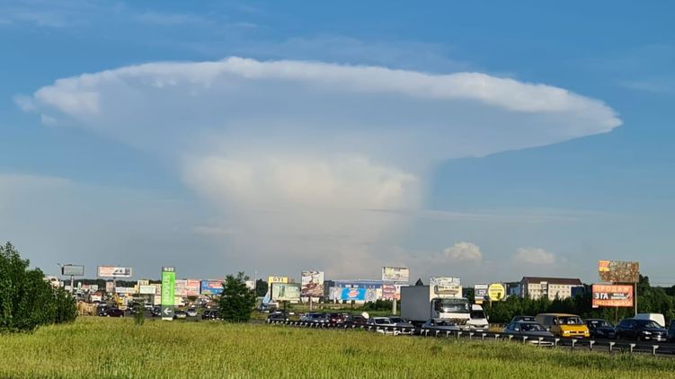 В Государственной службе по чрезвычайным ситуациям объяснили, почему 19 июня над Киевом на Кольцевой можно было увидеть необычное облако в виде "гриба" или "воронки". По словам спасателей, это - один из видов кучево-дождевого облака под названием наковальня.