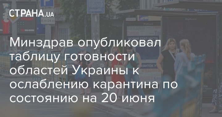 Минздрав опубликовал таблицу готовности областей к ослаблению карантина по состоянию на 20 июня. Фото: Страна