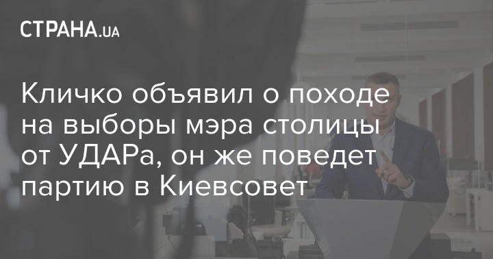 Виталий Кличко заявил, что он будет выдвигаться в мэры Киеве от своей партии "УДАР", также он намерен повести команду на местные выборы в Киевсовет.