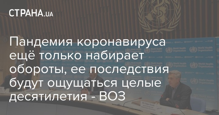 Глава Всемирной организации здравоохранения (ВОЗ) Тедрос Адханом Гебрейсус заявил, что пандемия коронавируса продолжает нарастать. А вызванный ею масштабный кризис будет давать о себе знать на протяжении десятилетий.