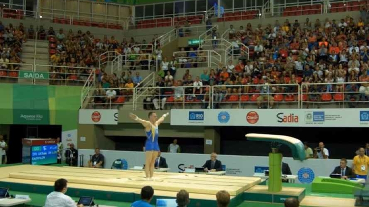Украинский гимнаст Игорь Радивилов исполняет уникальный прыжок, Фото: FIG Channel