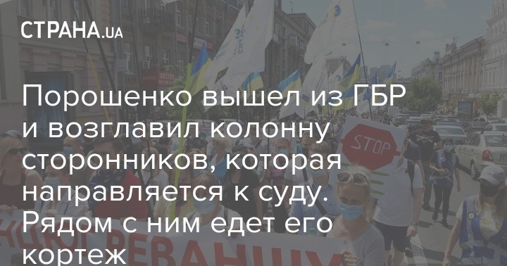 Порошенко вышел из ГБР и возглавил колонну сторонников, которая направляется к суду. Рядом с ним едет его кортеж