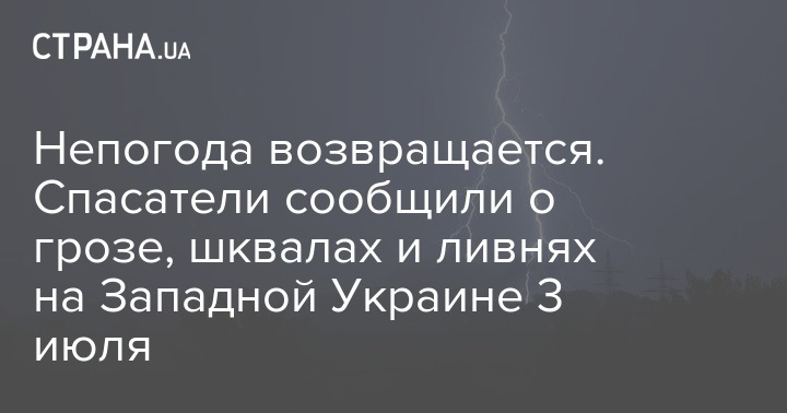 "3 июля в западных областях грозы, в отдельных районах град и шквалы 15-20 м/с, на Закарпатье и в Карпатах, днем также и на Прикарпатье значительные дожди", - говорится в сообщении.