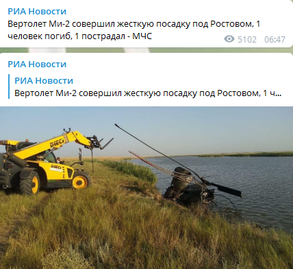 В России произошла очередная авиационная катастрофа. Трагедия в этот раз разыгралась в Ростовской области. Здесь прямо в водоем рухнул частный вертолет Ми-2.